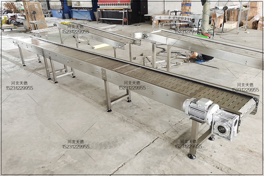 鏈板輸送機(jī)歡迎來(lái)電定制河北天德雞胸肉油炸流水線鏈板輸送機(jī):15231229955 網(wǎng)址:http://m.gaiea.cn/